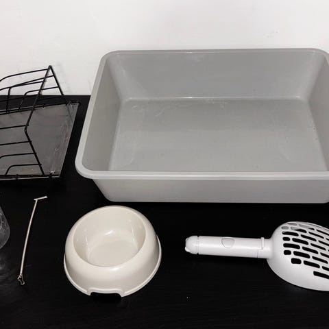 Myydään kaneille tarkoitettu tarvikepaketti oman kanin menehtymisen vuoksi. Paljon kaikkea: eri kokoisia juomapulloja, jotka ovat jo vähän osumaa saaneita mutta edelleen käyttökelpoisia, lapiot vessalaatikon puhdistukseen, ruoka- ja juomakipot, herkkupallo, metallinen heinäteline, kynsisakset, harja, pissa-alustoja joita jäljellä vielä neljä ja lehtipuutikut (ostettu Peten koiratarvikkeesta), jotka jäivät käyttämättömiksi.