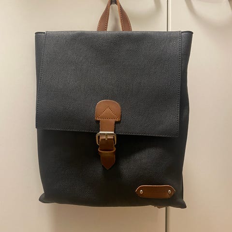 Sinertävän harmaa nahkajäljitelmäinen reppu, erittäin vähän käytetty ja todella hyväkuntoinen. Korkeus n. 27cm, leveys 34cm (leveimmästä kohdasta). Vetoketjullinen pääsäiliö + koristevetoketjut sivussa, jotka avaamalla saa laukun hieman suuremmaksi. 2 pienempää sivutaskua, toinen ulkopuolella, toinen pääsäiliössä joka myös vetoketjullinen. Säädettävät remmit.