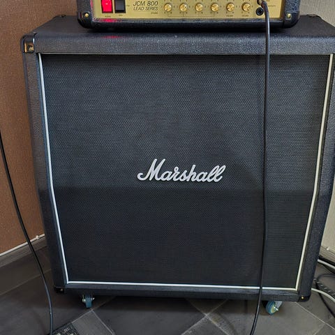 Ikivanha Marshallin 100 W kaappi, josta 1 tai 2 ämyriä rikki. Mittaamalla selviää, mitkä toimii