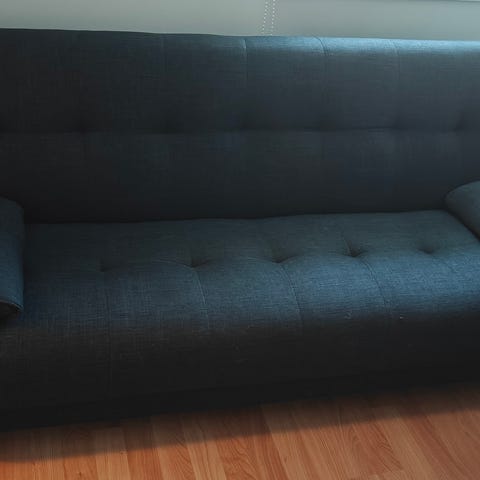 Iso vuoteeksi levitettävä sohva. Kunto hyvä, lapsiperheestä. Leveys 292cm, divaani 68cm, istuintyynyt 168cm.