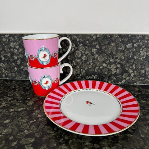 Pip studion ruusukuvioiset syvät lautaset, halk. 21,5 cm, käyttämättömät, mynnissä 4 kpl, yhden hinta 14 e, kaikki yhteensä 52 e