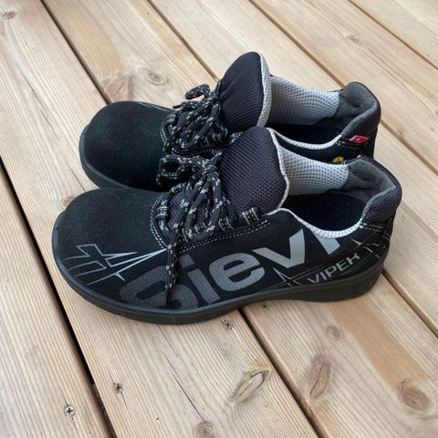 Sievi Viper työkengät, koko 37. Väri musta harmailla yksityiskohdilla. Kenkien päällinen on matalavartinen ja nauhoilla säädettävä. Sopivat työ- ja suojakengiksi erilaisiin työtehtäviin, joissa tarvitaan tukevat ja pitävät kengät.Koko 37 vastaa sievissä 38 kokoa.