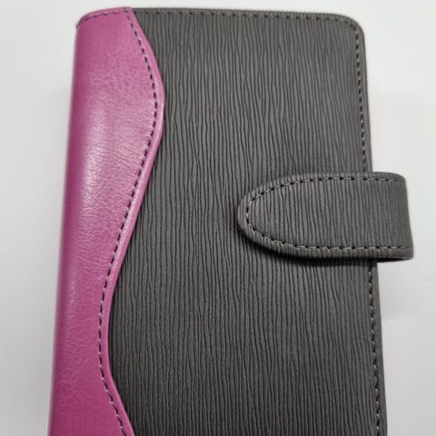 Minikokoinen järjestelmä. Kansissa vetoketjullinen lompakko, jossa vetoketjullinen kolikkotasku. Mukana viivain, aakkostetut ja numeroidut muoviset välilehdet sekä täydennyspaketti (muistiinpanosivut). Kannen koko 85 x 120 mm.