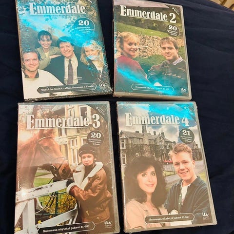 Emmerdale-kokoelmaboksi, joka sisältää sarjan alkuperäisiä jaksoja 83 kpl. Sisältää 12 DVD-levyä. Tuotantovuodet 1989-90. Pakkaus poistettu muoveista, mutta ei ole koskaan katsottu.