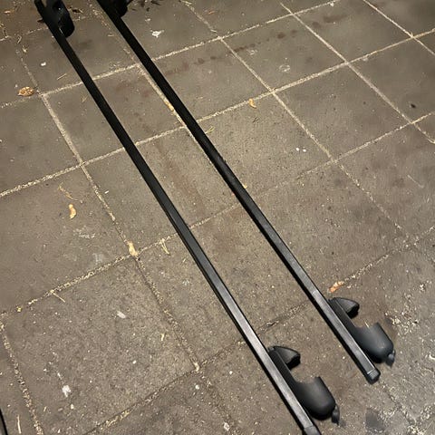 Atera kattotelineet henkilöautoon jossa kattokiskot. Ollut mm Toyota Auris ja VW Passat 2017. Toisenntelineen päästä kumitulppa irronnut, mutta ei vaikuta käyttöön. Huomioitu hinnassa.