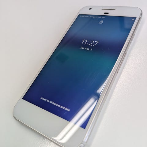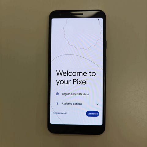 Täysin toimiva Google Pixel 6a. Näytössä kuvassa näkyvä vaurio – kosketus ja näyttö toimivat kuitenkin normaalisti.