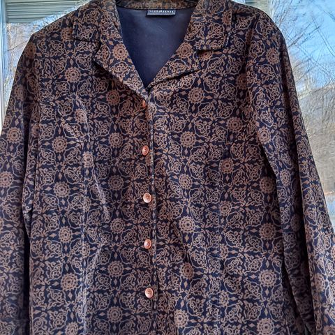 Uudenveroinen, monikäyttöinen musta samettijakku, 100% puuvilla, vuori 100% polyester, hihat nauhakirjaillut, kaunis kimalteleva nappi. Hinta 30€. Jakun alla oleva käsinkirjailtu musta samettitoppi, koko M, myydään myös erikseen 20€. Jos yhdessä jakun kanssa, yhteishinta 40€.