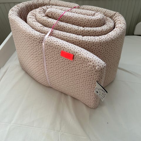 Done by Deer pinnasängyn reunapehmuste. Vaalea, kuviollinen pehmuste. Sopii 60X120cm kokoiseen pinnasänkyyn. Materiaali pehmeää kangasta, sisällä pehmuste, joka tukee rakennetta ja lisää mukavuutta.