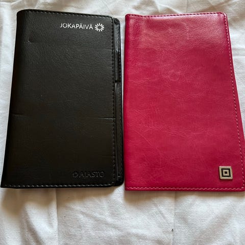 HUOM! Kannet eivät sisällä kalenteria, EIKÄ kyseisiin kansiin enää sellaisia valmisteta, joten sopii hyvin mm. lompakoksi.