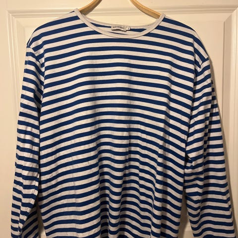 JOKAPOIKA-paita kokoa XXL. Sininen, raidallinen kuosi. Materiaalina puuvilla.