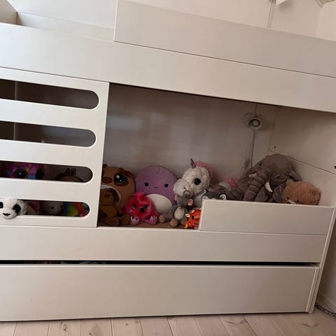 Myydään valkoinen kerrossänky, joka sopii kahdelle lapselle.