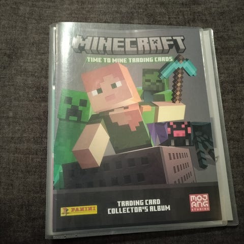 Minecraft keräilykansio + keräilykorttejä (n. 43 kpl, pari tuplakorttia).