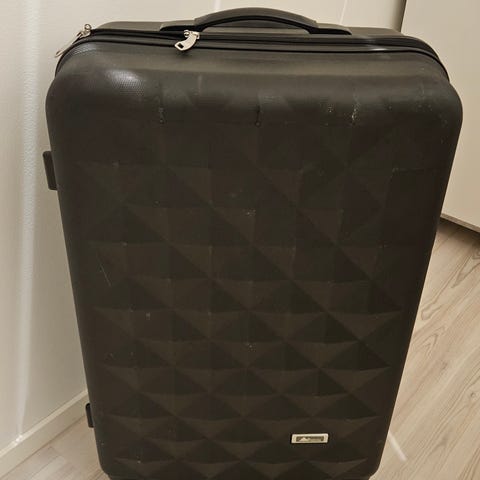 American Tourister matkalaukku. Kova kuori on valmistettu muovista ja väriltään musta. Laukussa on numerolukolla varustettu lukitusmekanismi sekä kantokahva.
