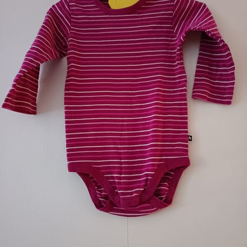 Ihana body, pinnassa haitua, tussitahraa on, joka jää kuosin sekaan peittoon, yksi reikä paikattu selästä. Koko 86/92.