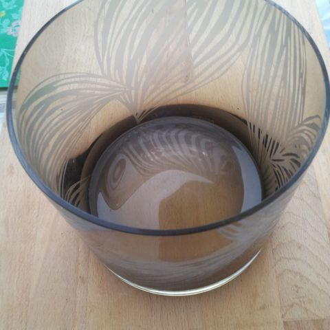 Myynnissä ruskea Pentik lasimaljakko 21x27 cm.