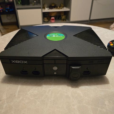 Microsoft Xbox pelikonsoli ohjaimilla ja peleillä