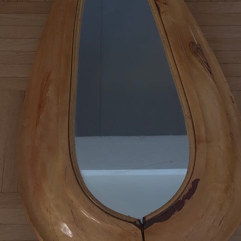 Peili täysin ehjä. Takana pieni jälki, jolla ei vaikutusta peilin kiinnitykseen tai ulkonäköön. Muita moitteita peilissä en ole huomannut.