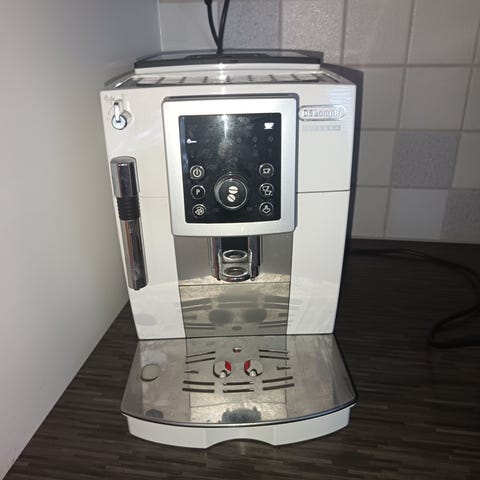 Viime aikoina vähälle käytölle jäänyt De'Longhi ecam 23.210 kahviautomaatti, jossa on etupaneelissa painikkeet ja näyttö juomavalintojen ohjaamiseen. Laitteessa on höyrysuutin maidon vaahdottamiseen. Soveltuu espresson ja muiden kahvijuomien valmistukseen kotikäytössä. Mukana käyttöohjekirja.