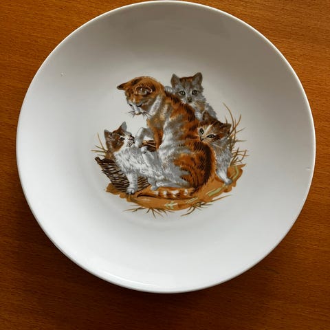 John Evansin kissa-aiheiset vintage seinälautaset