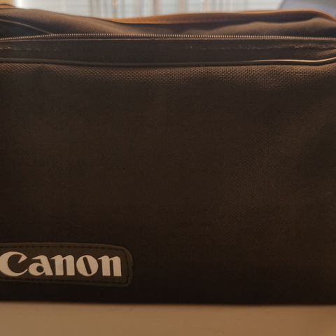 Canon olkalaukku jossa ainakin vetoketju irronnut osittain.