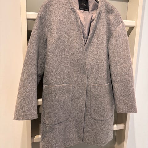 Zaran beige pitkä villakangastakki, ulkokuori 75% villaa. Ovh muistaakseni lähemmäs 200€ laadukkaan materiaalin vuoksi. Takin helmassa pientä likaa, mutta ei erityisen näkyvää. Saa myös varmasti pestyä pois, itse en ole yrittänyt.
