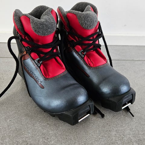 Salomonin hiihtomonot. Siistikuntoiset varsi hieman löystynyt. Pikakiristys nauhat. Koko 30. SNS siteelle. Myynnissä myös sukset 120cm ja toiset monot.