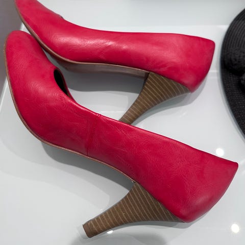 Vadelman(?)punaiset Tamariksen korolliset nilkkurit vetoketjulla. Kerran ulkoilutettu. Sisämitta 24,5-25cm riippuu vähän miten mittaa. Korko 10cm. Kuin uudet, ei jälkiä missään lukuunottamatta pohjia. Vetoketjut toimii. Alkuperäinen hinta n 90e.