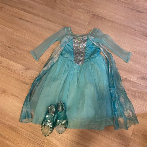 Frozen jumppapuku / jumppa-asu / tanssiasu / tyllihame koossa 116-122, mutta meillä ollut käytössä jo 110 kokoisella. Kunto hyvä.