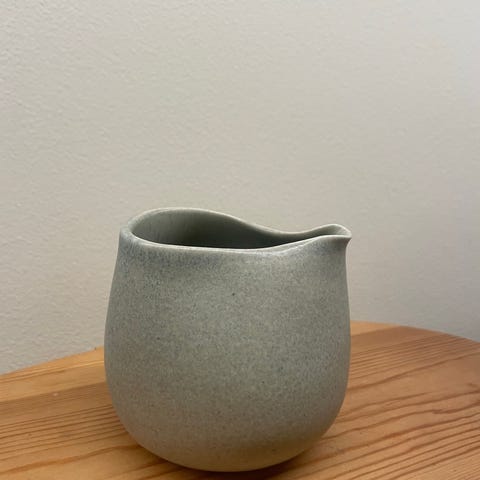 Ajaton ja minimalistinen keramiikkaesine, joka toimii maljakkona, karkki- tai keksipurkkina tai kauniina sisustuselementtinä sellaisenaan.
