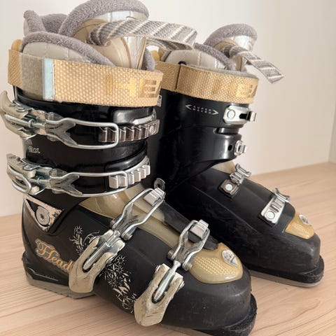 Head laskettelumonot, koko 24/24.5. Kengän koko 38-39. Väri musta harmailla ja hopeansävyisillä yksityiskohdilla. Monossa neljä säädettävää solkea ja hihna varren yläosassa istuvuuden säätöön. Pohjassa merkinnät koosta ja kiinnityspinnoista siteisiin. Soveltuu lasketteluun standardisiteitä käyttäville.