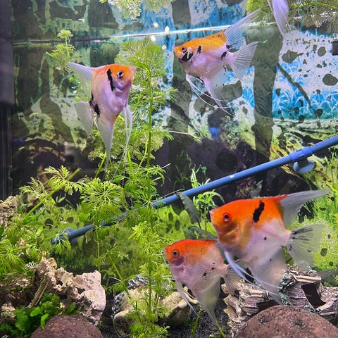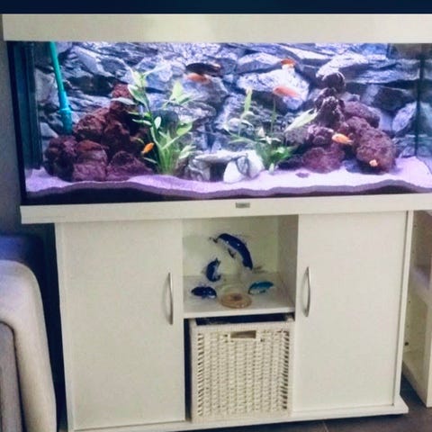 Pieni 20L akvaario (P 39 cm S 24 cm K 23 cm) ei jalustaa. Mukaan varalamppu, suodatin, 3 ämpäriä, joihin saa kasvit, pohjahiekan ja n. 10 kpl monneja. Akvaarion kannessa on valaisin. Hinta 20€.