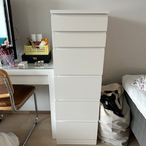 Ikea Tyssedal lipasto, jossa kuusi laatikkoa. Mitat: 127cm x 49cm x 81cm. VAIN NOUTO!