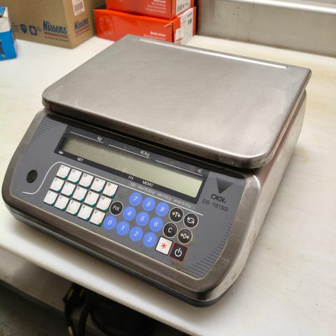 Myydään toimiva digitaalinen hinnoitteleva vaaka. Maksimikapasiteetti 40 kg ja tarkkuus 1 g.