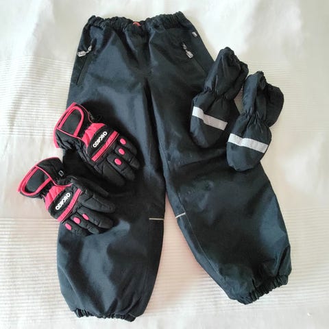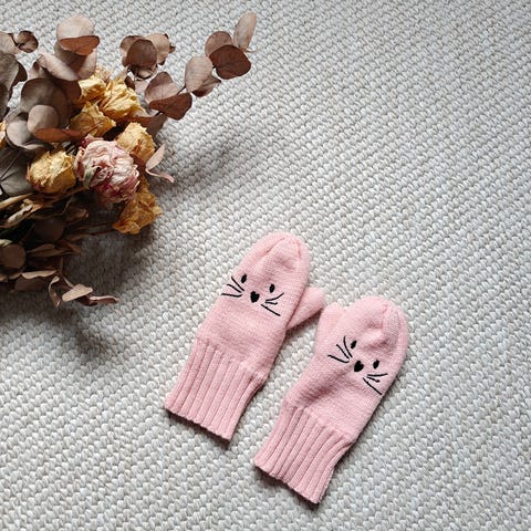 Käsinkudotut tumput ja House merkkiset toppasormikkaat kokoa 5-7v.