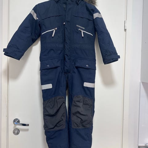 Tummansininen Didriksonin talvihaalarissa ollut huppu. Muistaakseni 100 tai 110 kokoisessa haalarissa, mutta en ole varma muistanko oikein. Haalari on mennyt rikki ja heitetty pois jo joitain vuosia sitten. Kuvattu mittanauhan kanssa ja napit näkyen niin, että voit sovitella sopisiko sinun haalariisi.