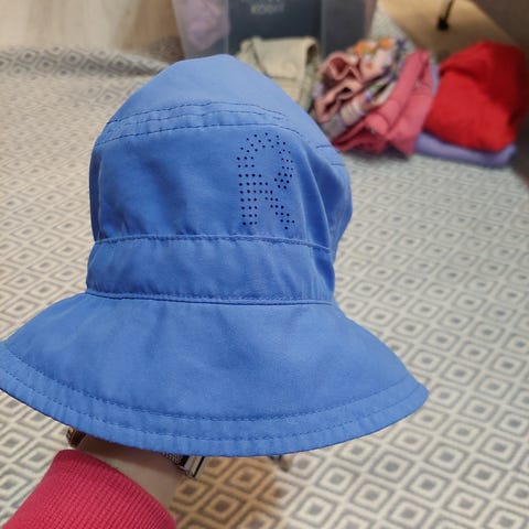 Yhden lapsen käyttämä valkoinen uv-lierihattu koossa 50. Siisti, käytetty kunto.