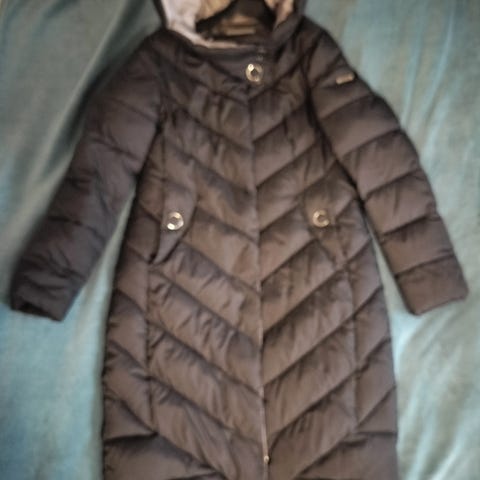 Pitkä takki huolellisesti tehtyä laatua.Kangasvuori.