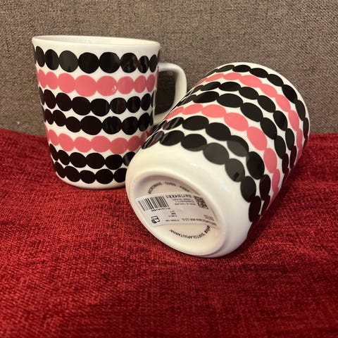 Muki 2,5 dl ja kulho 5 dl. Yht. 25 euroa.
