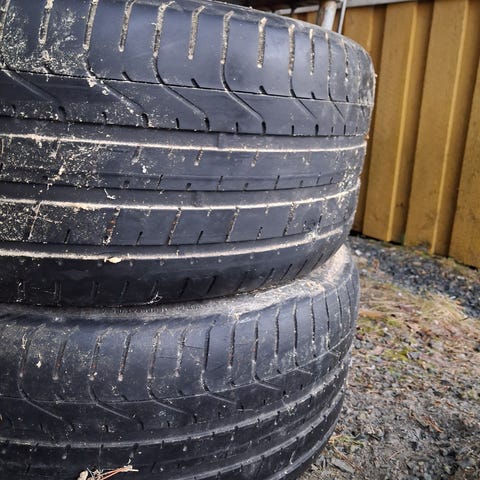 Myydään Volvo V70 mk3 vanteet. Renkaat huonot. Vanteista puuttuu keskikupit.