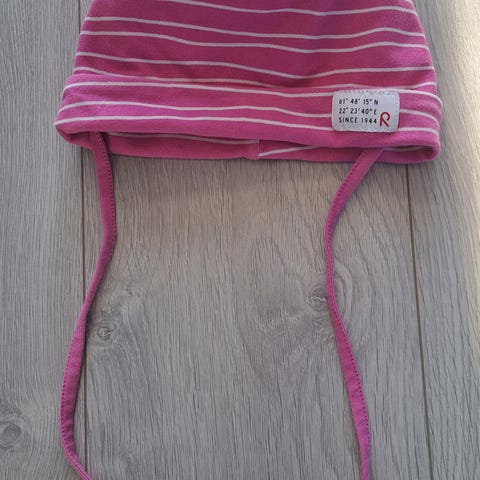 Puuvillainen trikoopipo hyvässä käytetyssä kunnossa. Sopii n. 1-2-vuotiaan päähän.