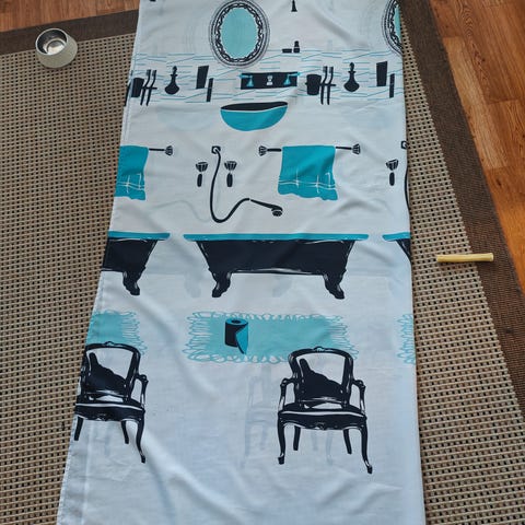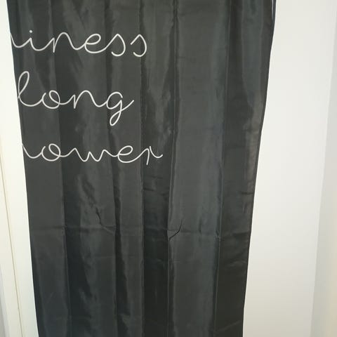 Kuvanmukainen uusi valkoinen suihkuverho 100% polyester. Koko 180×240. Mukana 12 suihkurengasta.