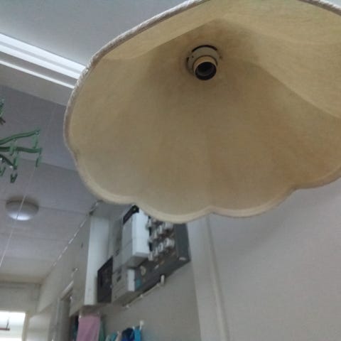 Valkoinen organzakankainen kattovalaisin.
