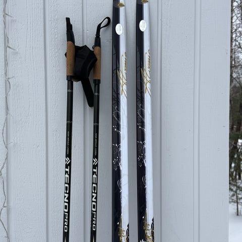 Mukana tulevat myös Exel-merkkiset luistelusauvat, joiden pituus on 165 cm. Sauvoja käytetty vielä vähemmän kuin suksia (uudemmat).