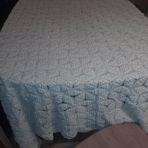 Aivan upea muhkea kotimainen ammattilaisen käsin tehty jättineulepeitto (100% villaa).