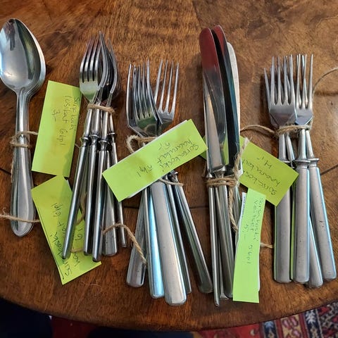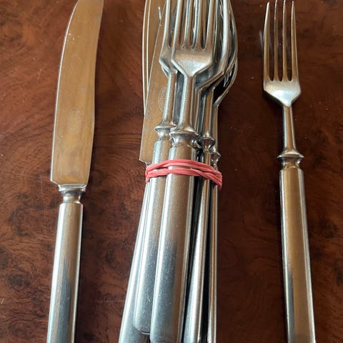 Hackman, Sorsakoski vintageaterimet, ” luupää”. 6 veistä, 6 haarukkaa