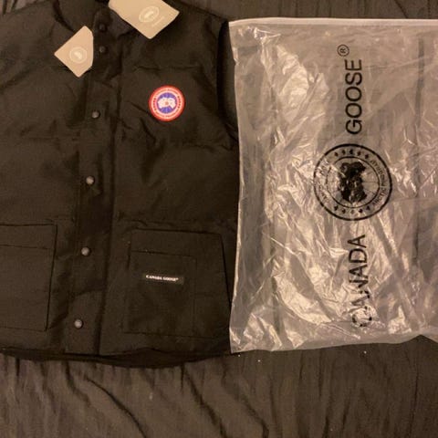 Myynnissä muutaman vuoden vanha Canada goose liivi, hyvässä kunnossa. M koko. Etutaskussa on pieni repeämä, näkyy viimeisessä kuvassa.