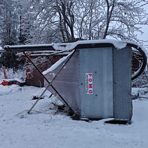 Suunnilleen ehjä rehulaitojen pressulaita. Alalaidan rautaputki mukana, ja se on suora.