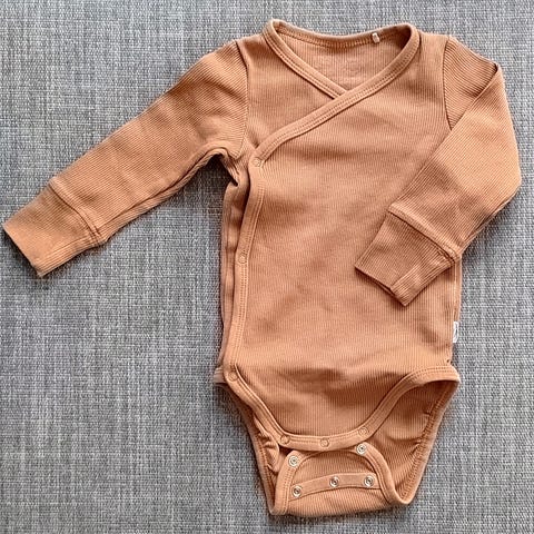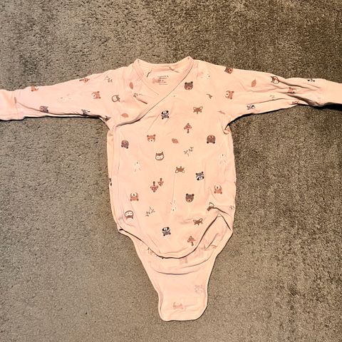 Lindexin ribbibody koossa 62. Tuplanepparit, kietaisumalli. Vaalealla pohjalla kullanvärisiä/ruskeita pisteitä. Oikein hyvä kunto.