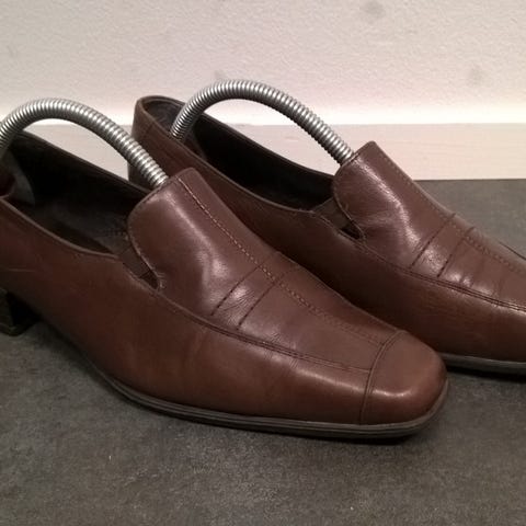 Kieppi mokkanahkaiset kävelykengät koossa 37 tai 38. Pohjallisissa kulumajälkeä, muutoin ehjät ja siistit käytetyt kengät.