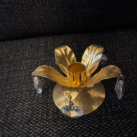 Vanha kristallikoristeinen siro kynttilänjalka